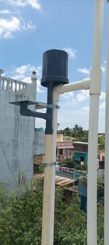 As part of our ongoing efforts to strengthen climate monitoring and water management, the Auroinnovation Centrehas successfully installed rain gauges in Kalapet and Thonnamatham. These installations mark the first steps in a broader plan to set up a network of 10 rain gauges throughout Pondicherry.